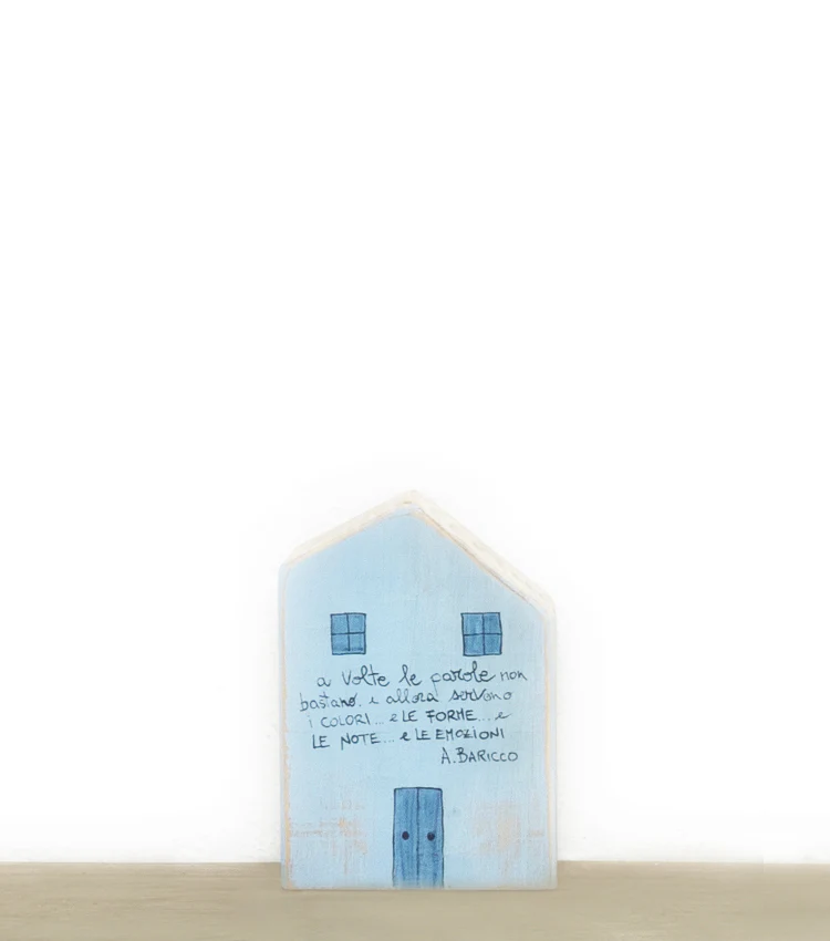 Casetta Ferma-Libri in legno con un aforisma di Alessandro Baricco