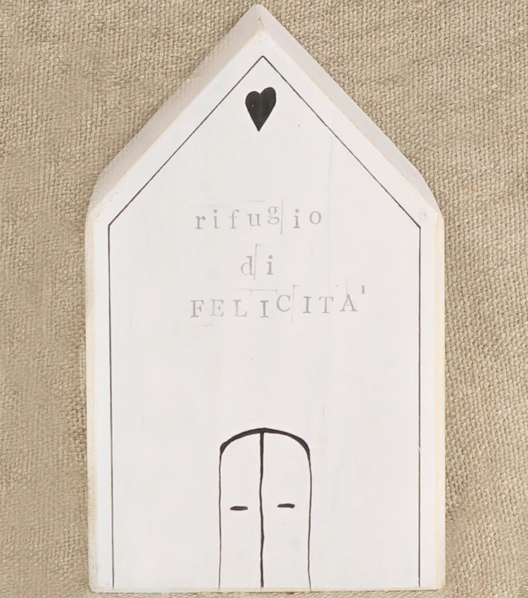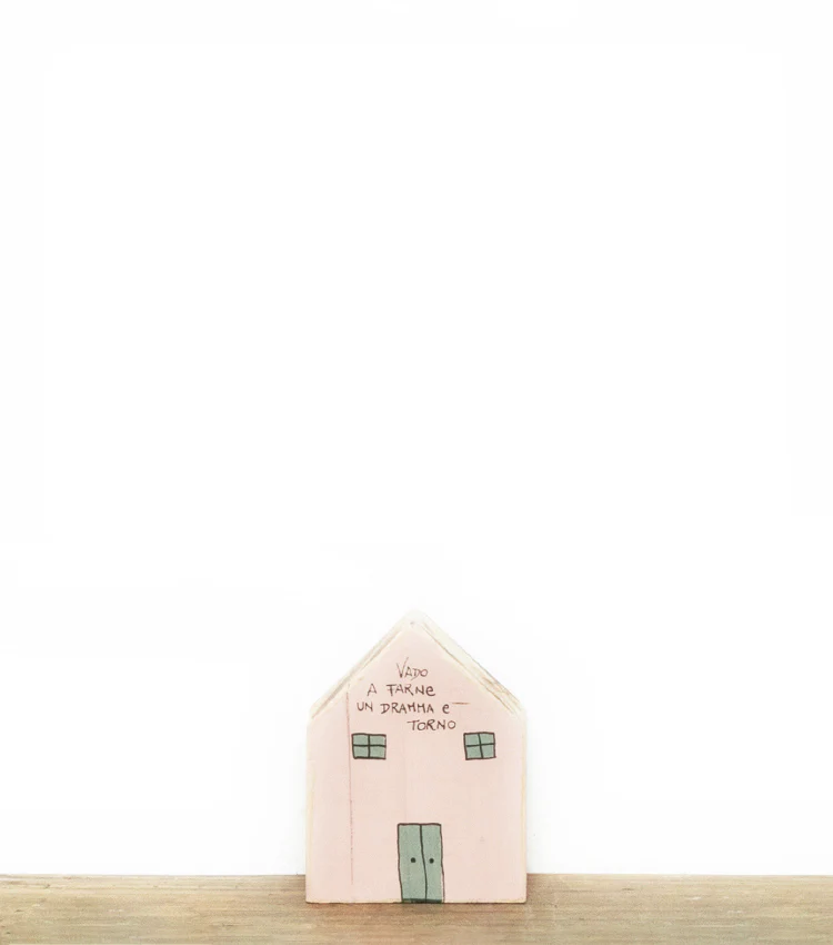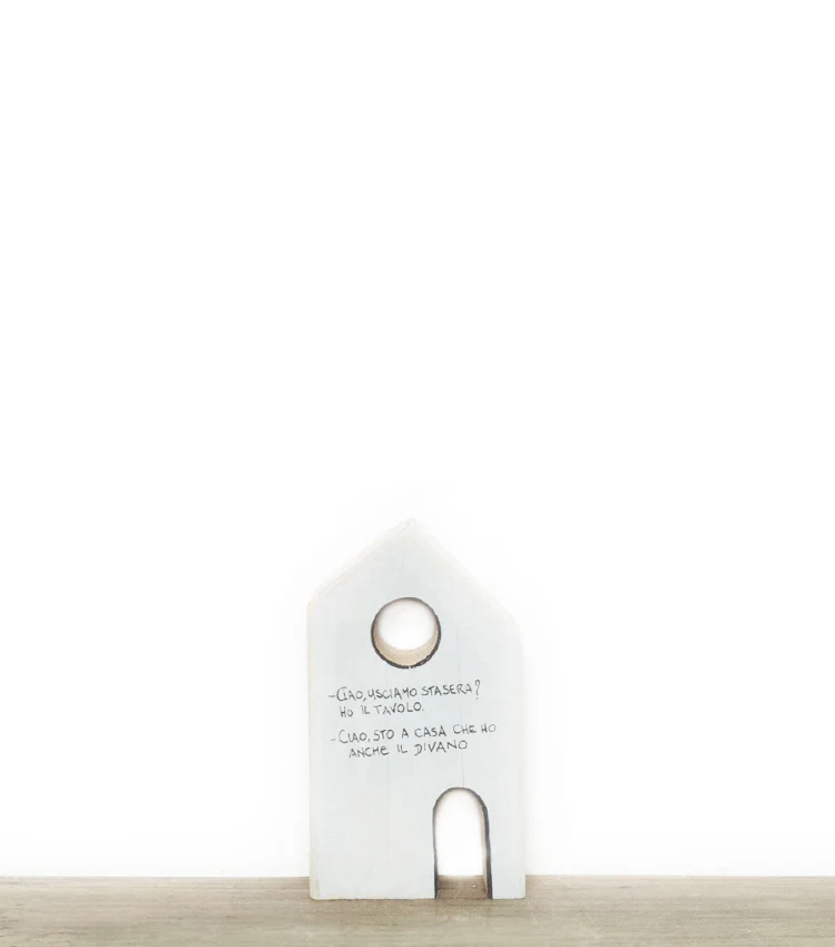 Casetta “- CIAO, USCIAMO STASERA? HO IL TAVOLO – CIAO, STO A CASA CHE HO ANCHE IL DIVANO” in legno