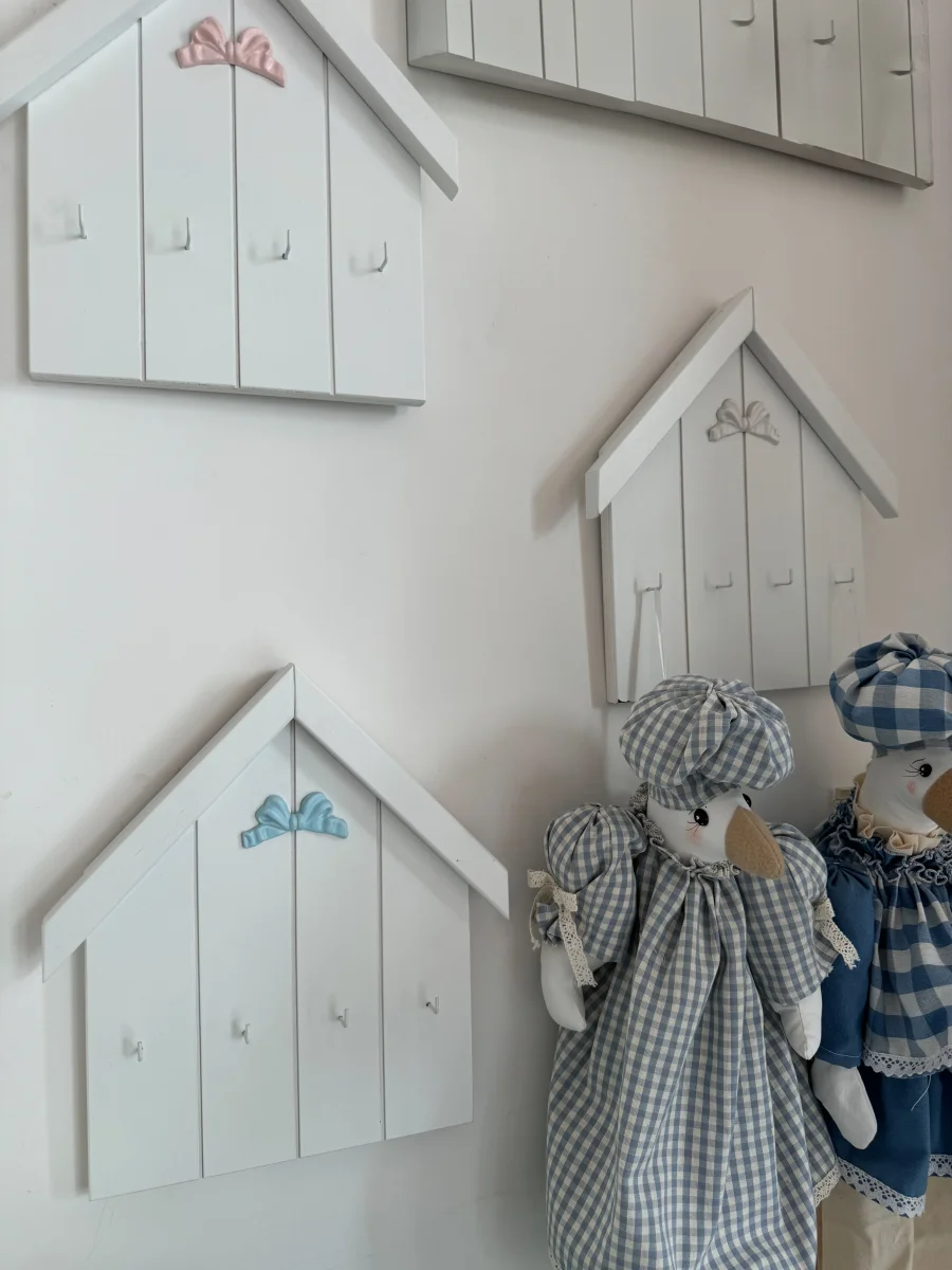 Casetta appendichiavi in legno con fiocco decorativo – 30×35 cm – Artigianale e personalizzabile