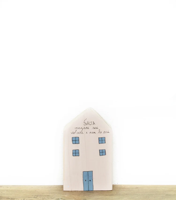 Casetta ferma-libri “SALTA magari sai volare e non lo sai” in legno