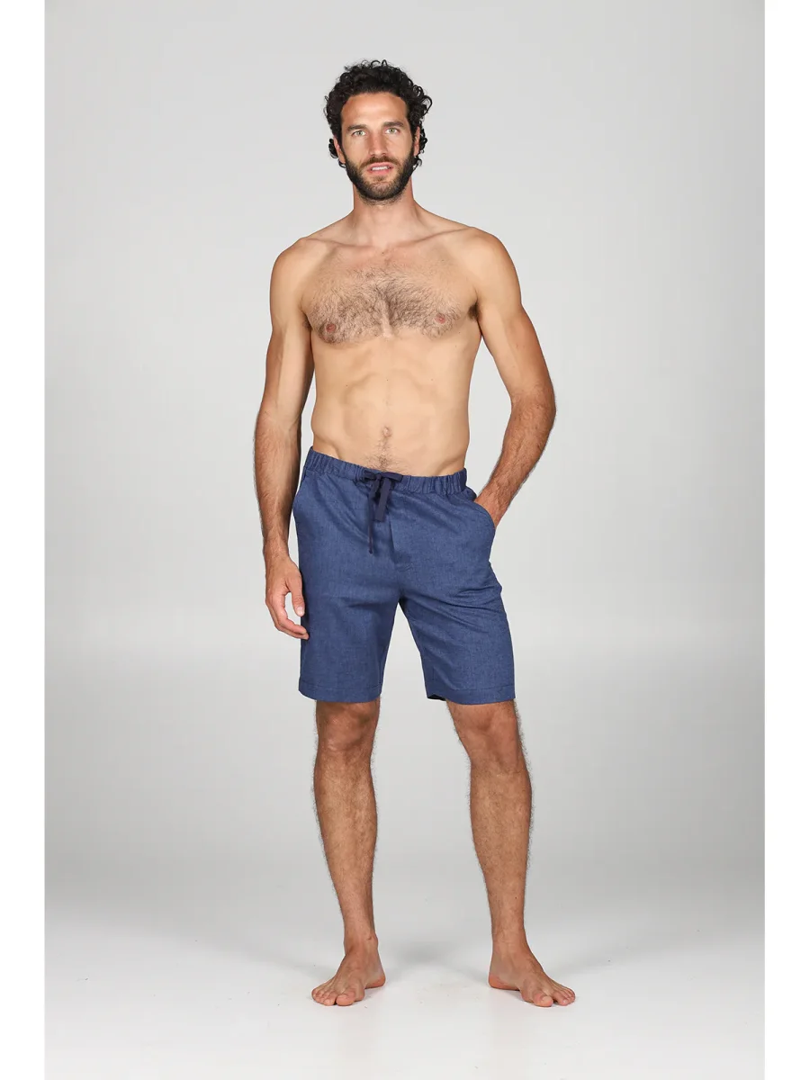 Comodi bermuda estivi, in fresco lino blu melange