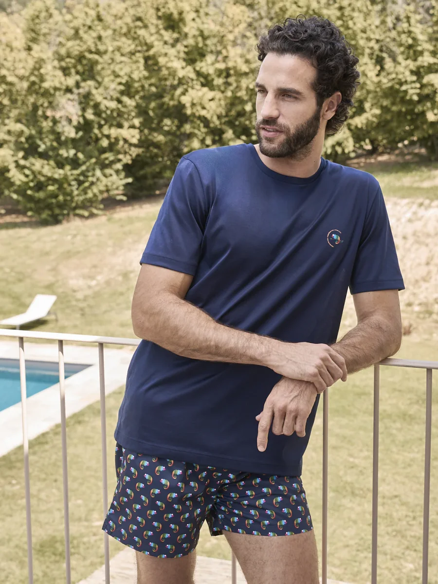 Boxer mare in leggera microfibra blu, con dettagli in contrasto