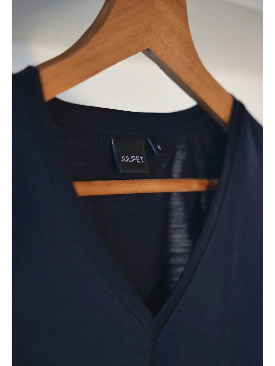 Maglietta blu a v in jersey di cotone elasticizzato