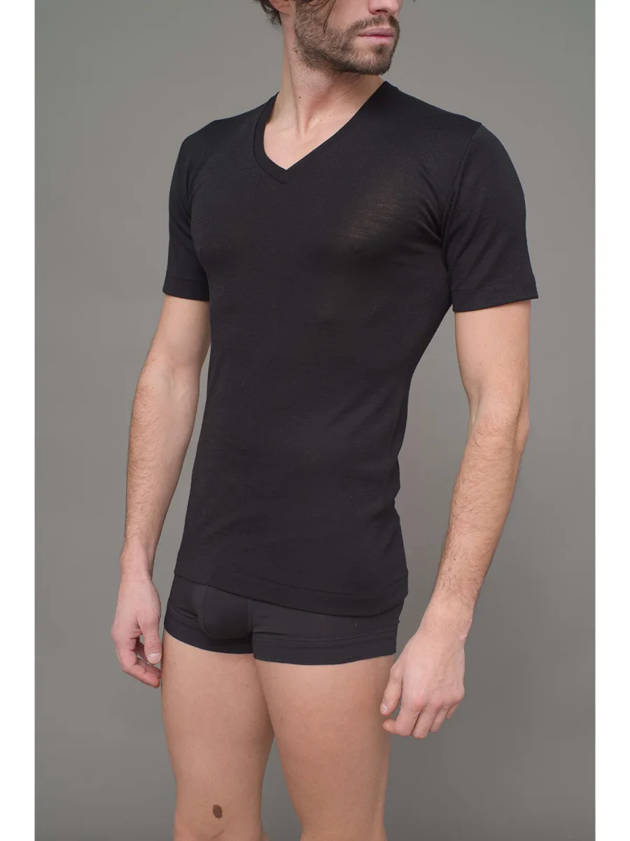 Maglietta a v in lana seta