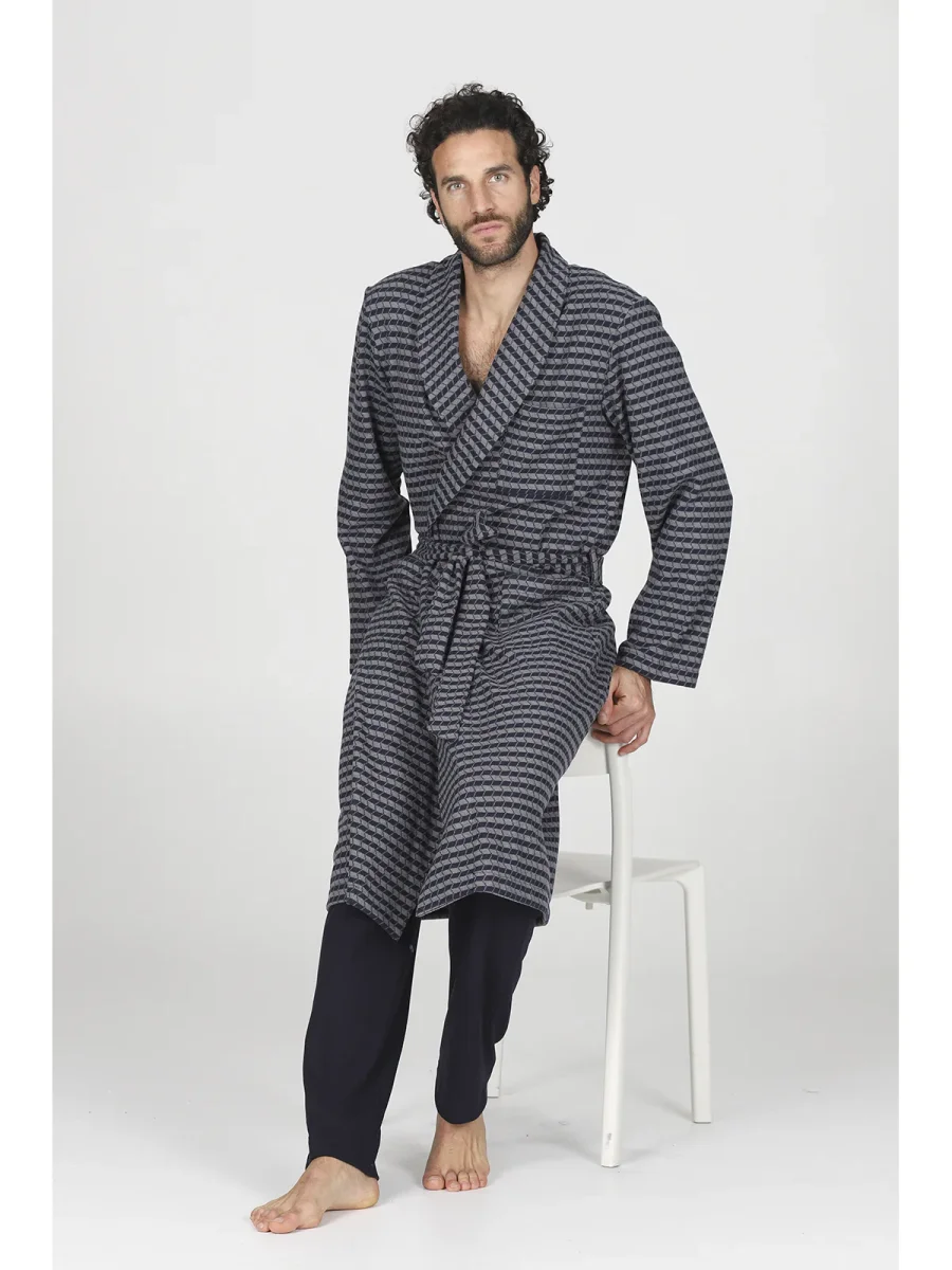 Vestaglia in confortevole jacquard di cotone pied de poule