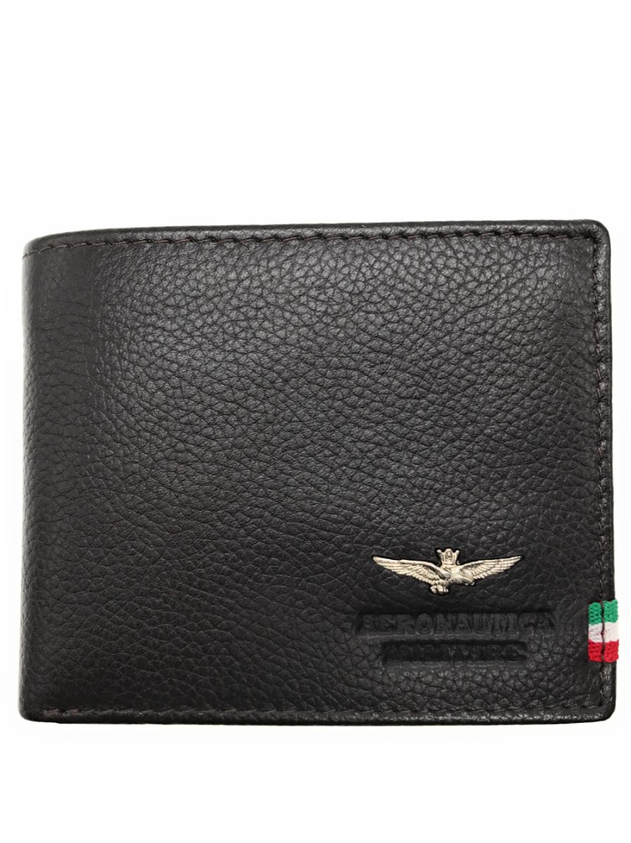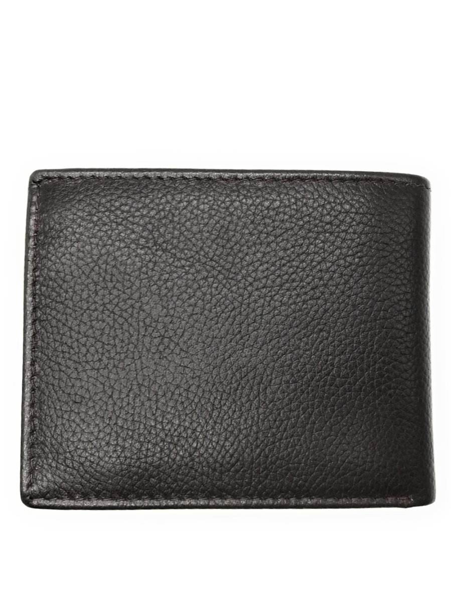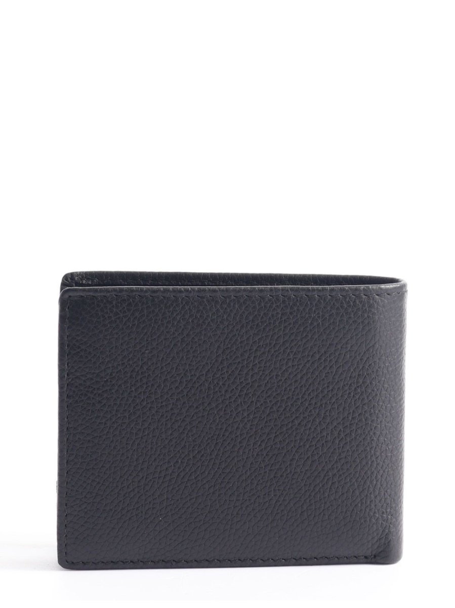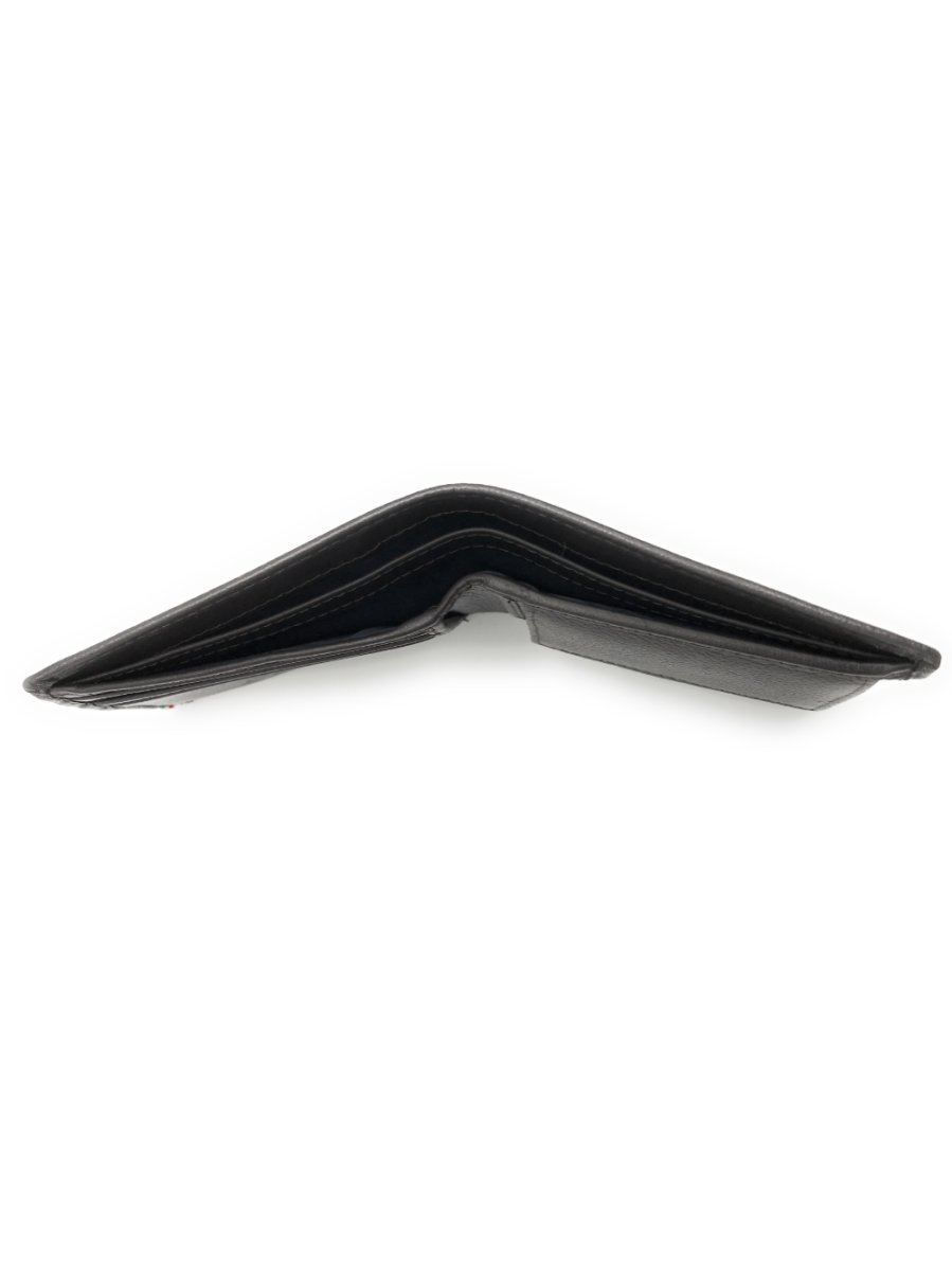 Portafoglio in pelle con scomparto per banconote, scomparti per carte di credito e vano per monete.