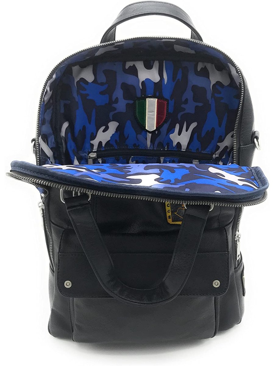 Zaino porta PC con organizer interno, zip posteriore e zip interna. La patch frontale intercambiabile AM/Frecce Tricolore permette di personalizzare i prodotti in base alle proprie preferenze.